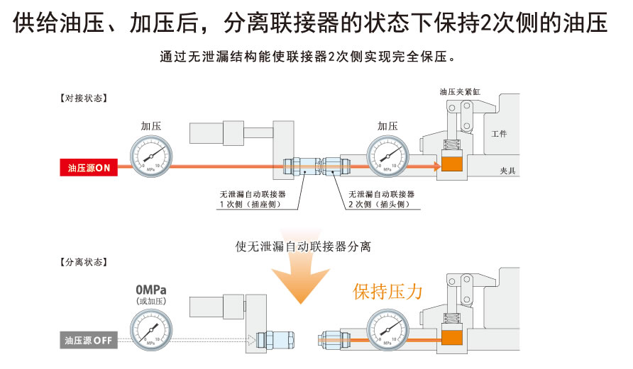 可以在加压状态下进行对接与分离,并设有调心机构的无泄漏自动联结器