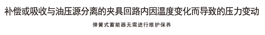 通过弹簧式蓄能器吸收压力变动,以防止因异常高压而导致机器破损或工件变形,以及因压力下降而引发的加工精度下降或工件脱落。
